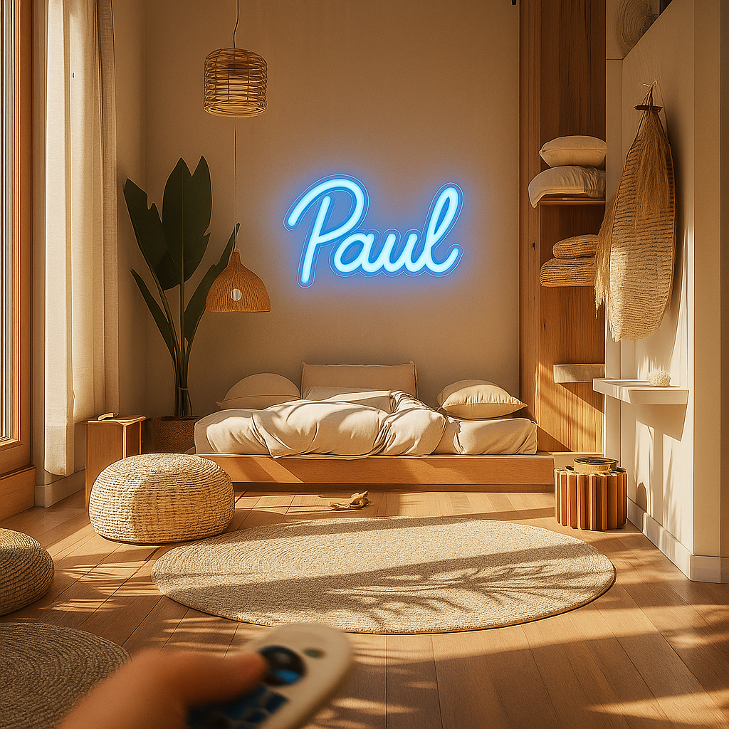 Nos néons sont conçus en LED basse tension (12V), sans chaleur ni danger, parfaits pour les enfants.